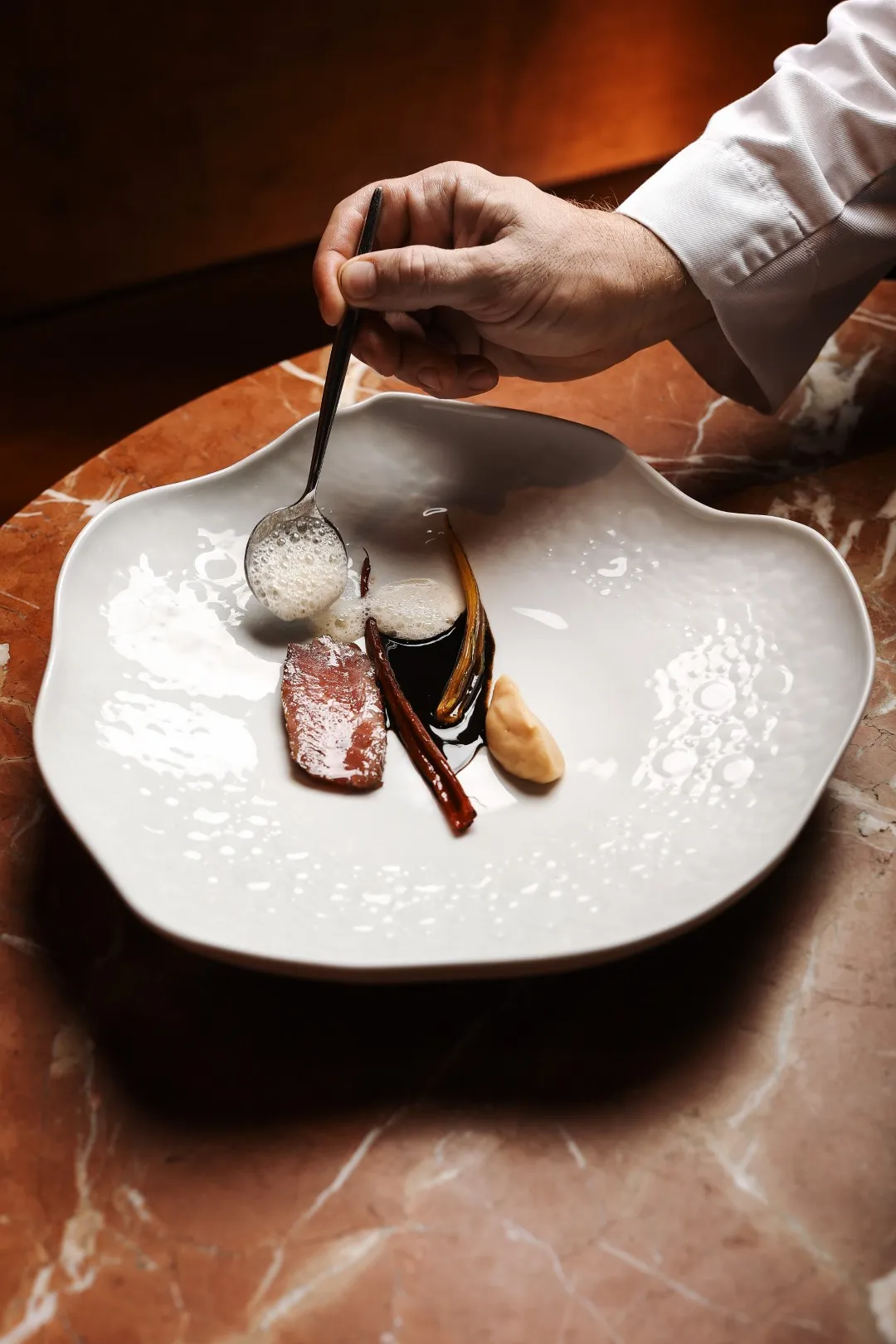 Pork garum jus, celeriac, vegetables stems, black truffle.